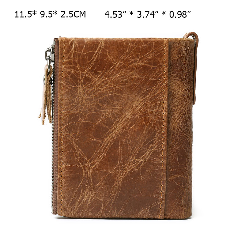 RFID Protected Classical Genuine Leather Men Wallet Card Holders Wallets Double Zippers Coin Wallet Men Leather Short Purse