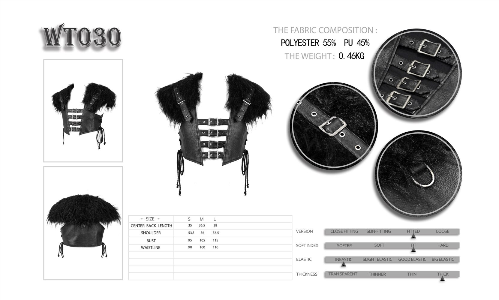 Devil Fashion Men's Punk Rock Fur Collar Vest Fashion Gorgeous Party Stage Performance Pu Waistcoat