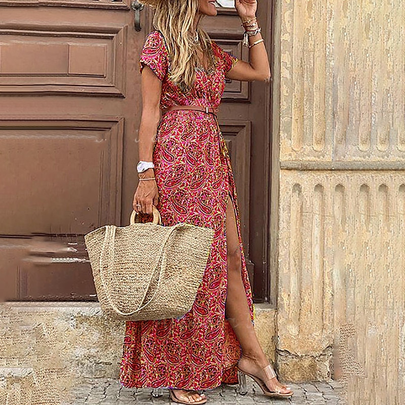 Boho Long Dress for Women Evening 2022 Vestidos de Mujer Summer Dresses Elegant Robe Femme Casual Maxi Short Sleeve Clothing