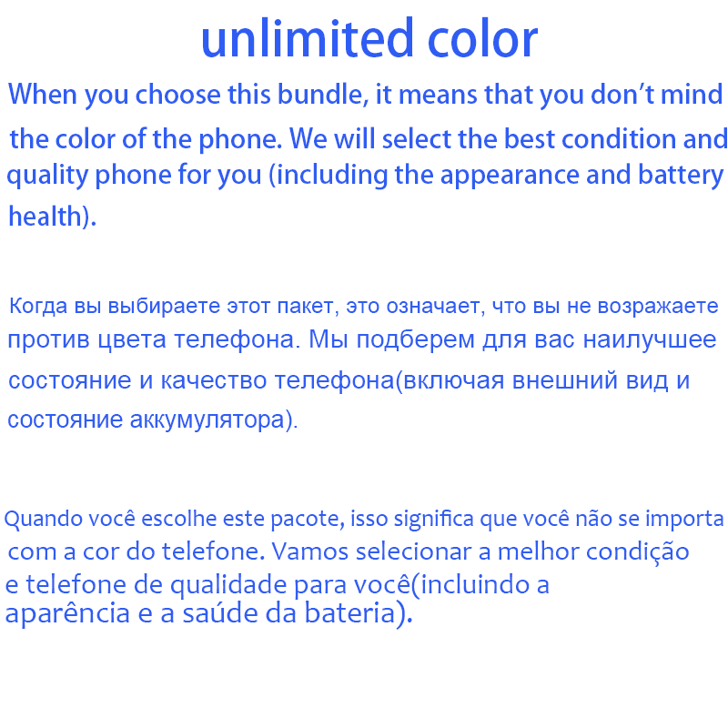 "Unlimited Color" :   it means that you don't mind the color of the phone. We will select the best condition and quality  phone for you (including the appearance and battery health).