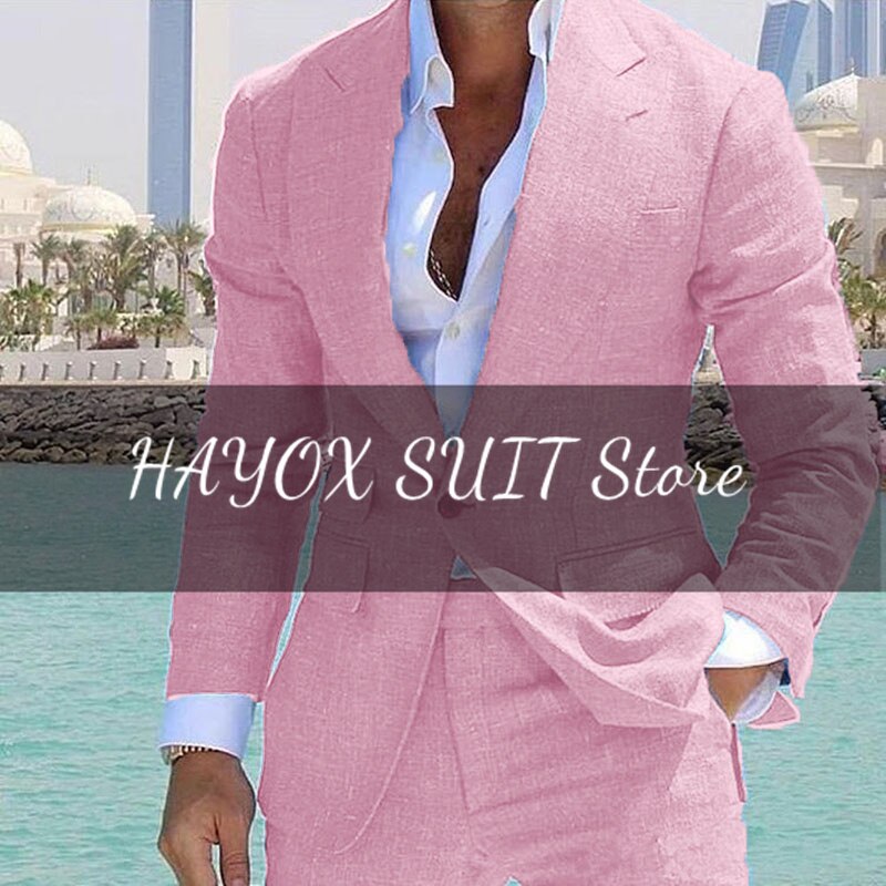 Men's Suit Linen Tip Lapel One Button Formal Groom Groomsmen Dress Jacket Pants Blazer Set Tuxedo