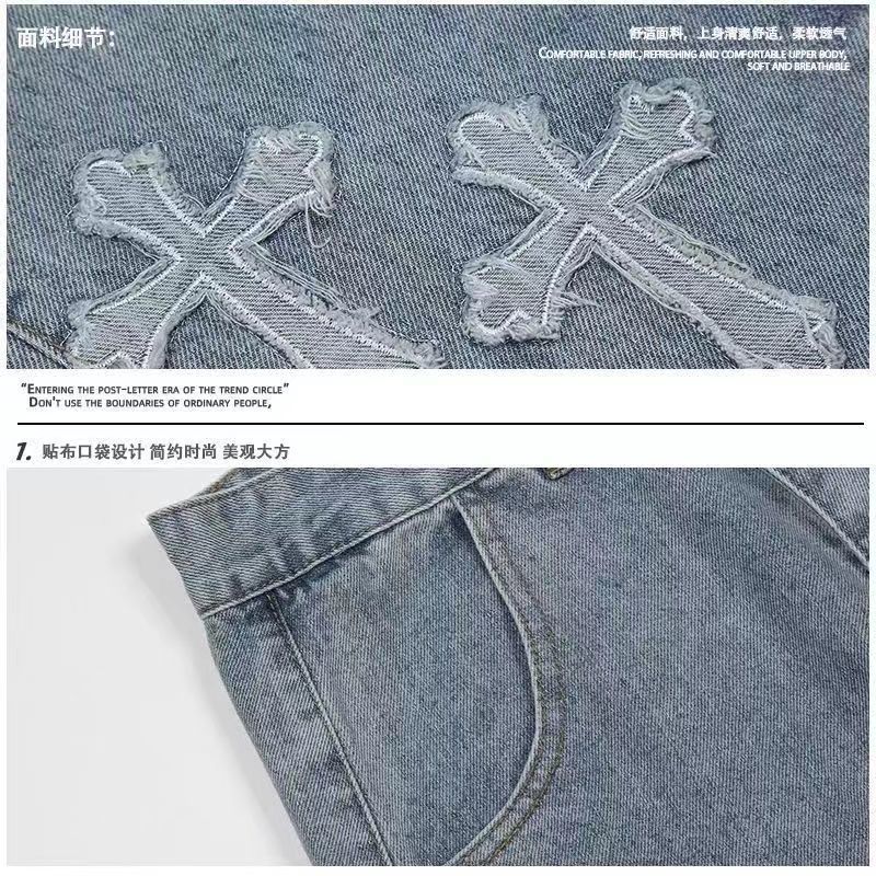 Streetwear Gothic Jeans Women Y2K High Waist Jeans Trousers Casual Cross Cargo Pants Korean Summer Straight Baggy Punk Clothes