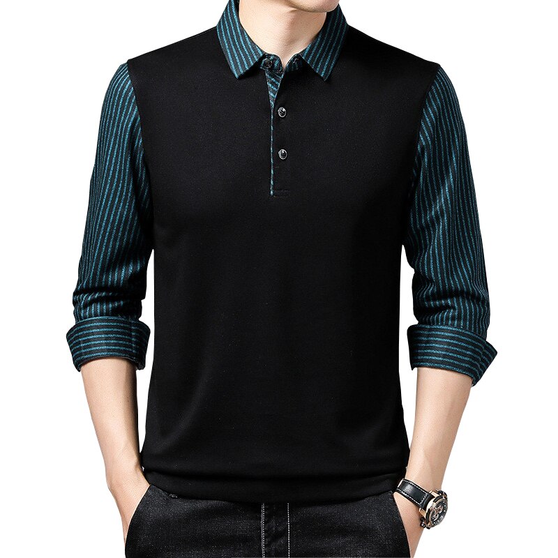 New Fashion Men Striped Polo Shirts for Men Solid Color Casual Designer Long Sleeve Tops Button Collar Men's Clothing 2022