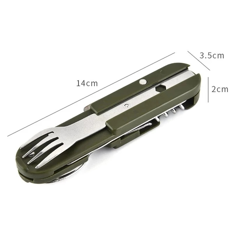 Army Green Folding Portable Stainless Steel Camping Picnic Cutlery Knife Fork Spoon Bottle Opener Flatware Tableware Travel Kit