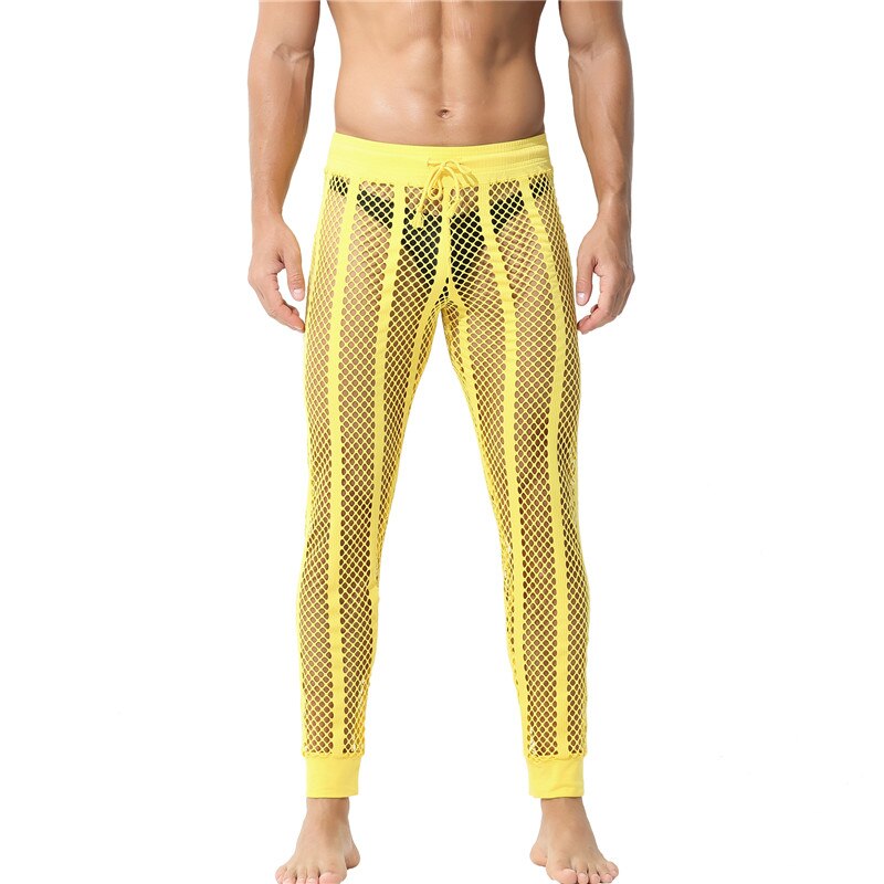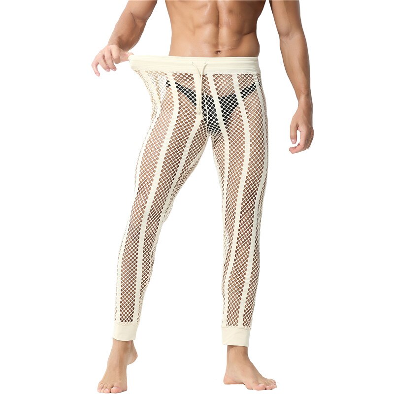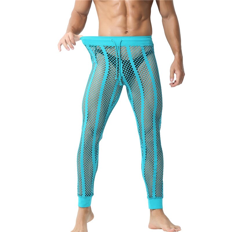 Mens Sexy Fishnet Long Pants Trousers Underwear Transparent Summer Pants Casual Sleep Homewear Sport Gym Fitness Pants Pajamas