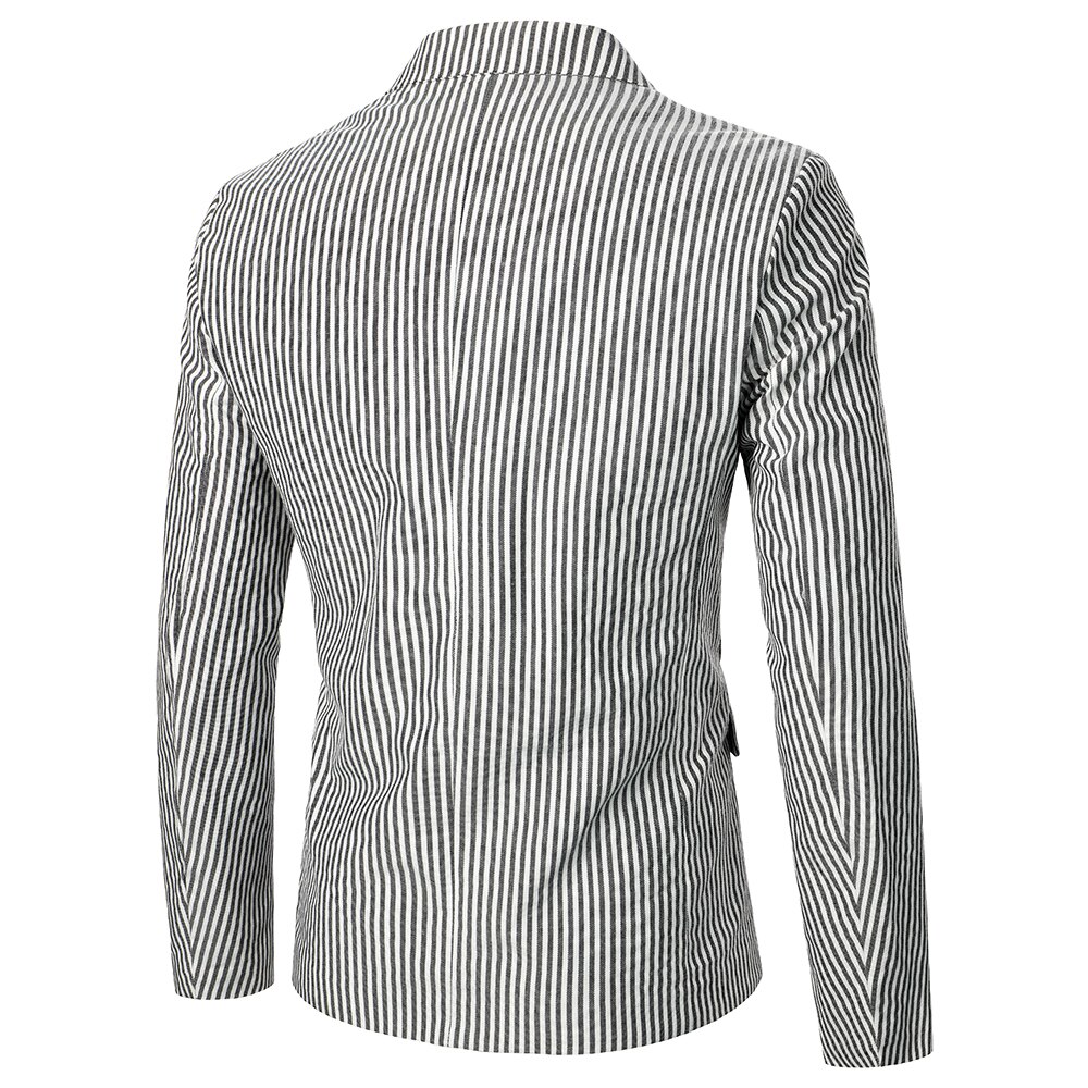 Men Long Sleeve Blazer Classic Stripe Pattern Fabric Causal Business Fashion Streetwear Slim Fit Two Buckles Men Blazer