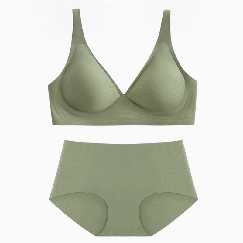 Women Seamless Bra Set Deep V Wireless Brassiere Briefs Sexy Lingerie Soft Bra Women's Comfy Underwear Set Female Intimates