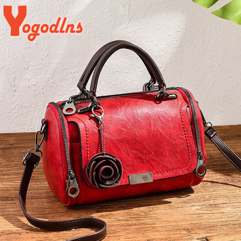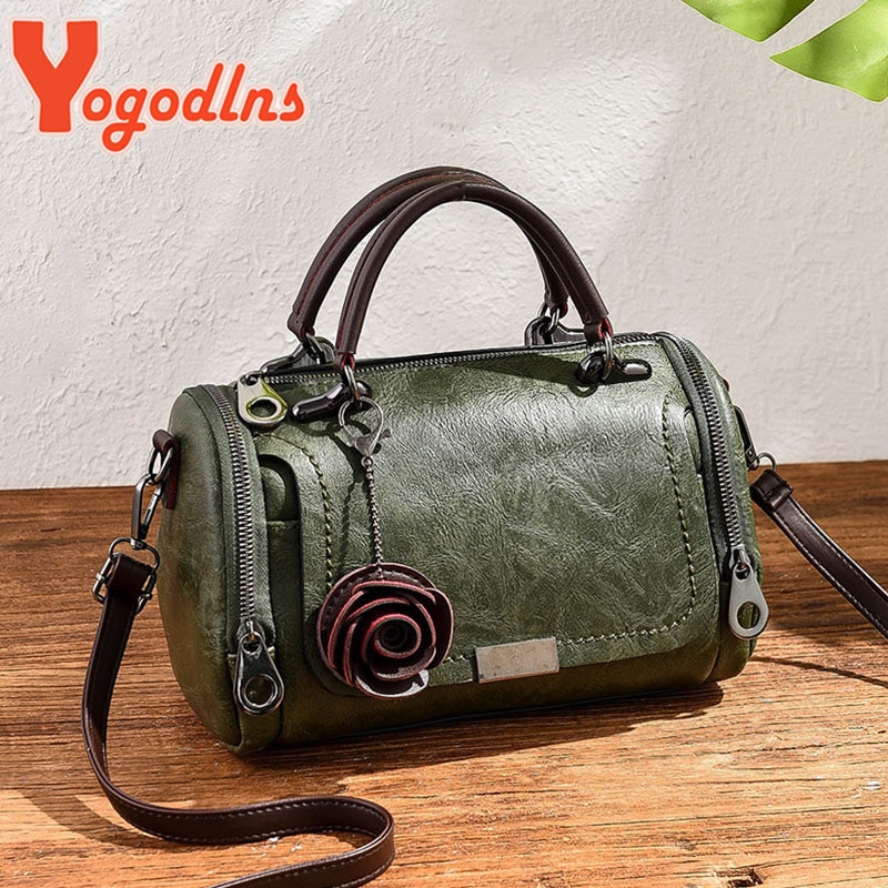 Yogodlns 2022 New flowers Pendant Handbag Women's fashion Boston bags single shoulder bag ladies crossbody bag PU messenger bag