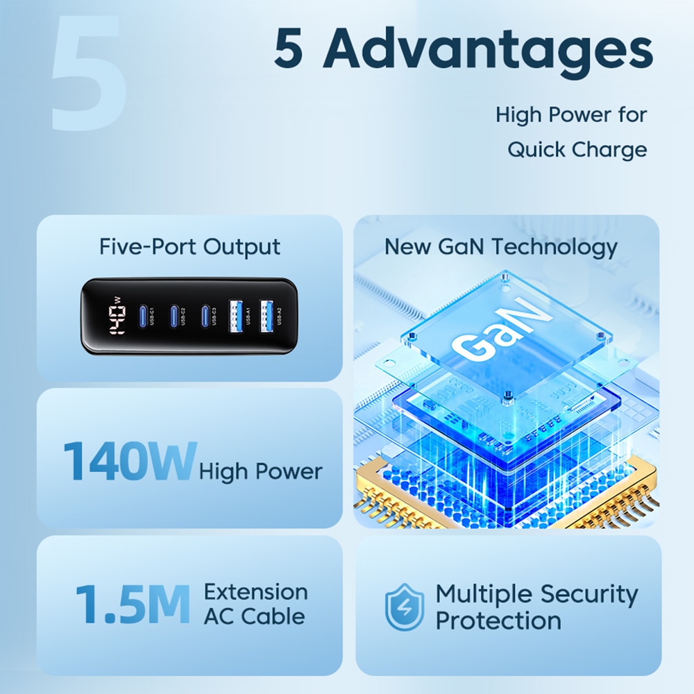 Toocki GaN Charger 140W 100W 65W LED Display Laptop Desktop USB C Charger For iPhone 12 13 Xiaomi Charging Station Fast Charger