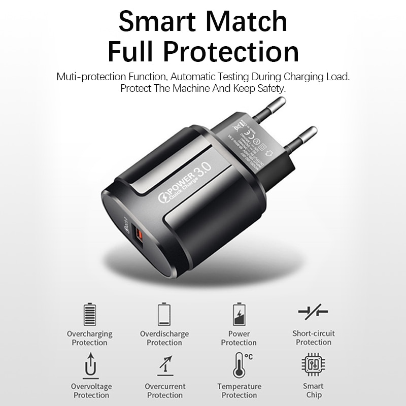 High quality fast Charge 3.0 stable high quality travel home fast charger 18W 3A QC3.0 single port USB mobile charger