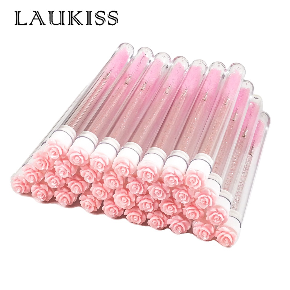 50pcs Reusable Eyelash Brush Tube Disposable Eyelash Wands Eyebrow Brush Replaceable Dust-proof Sparkling Broken Diamond Bottom