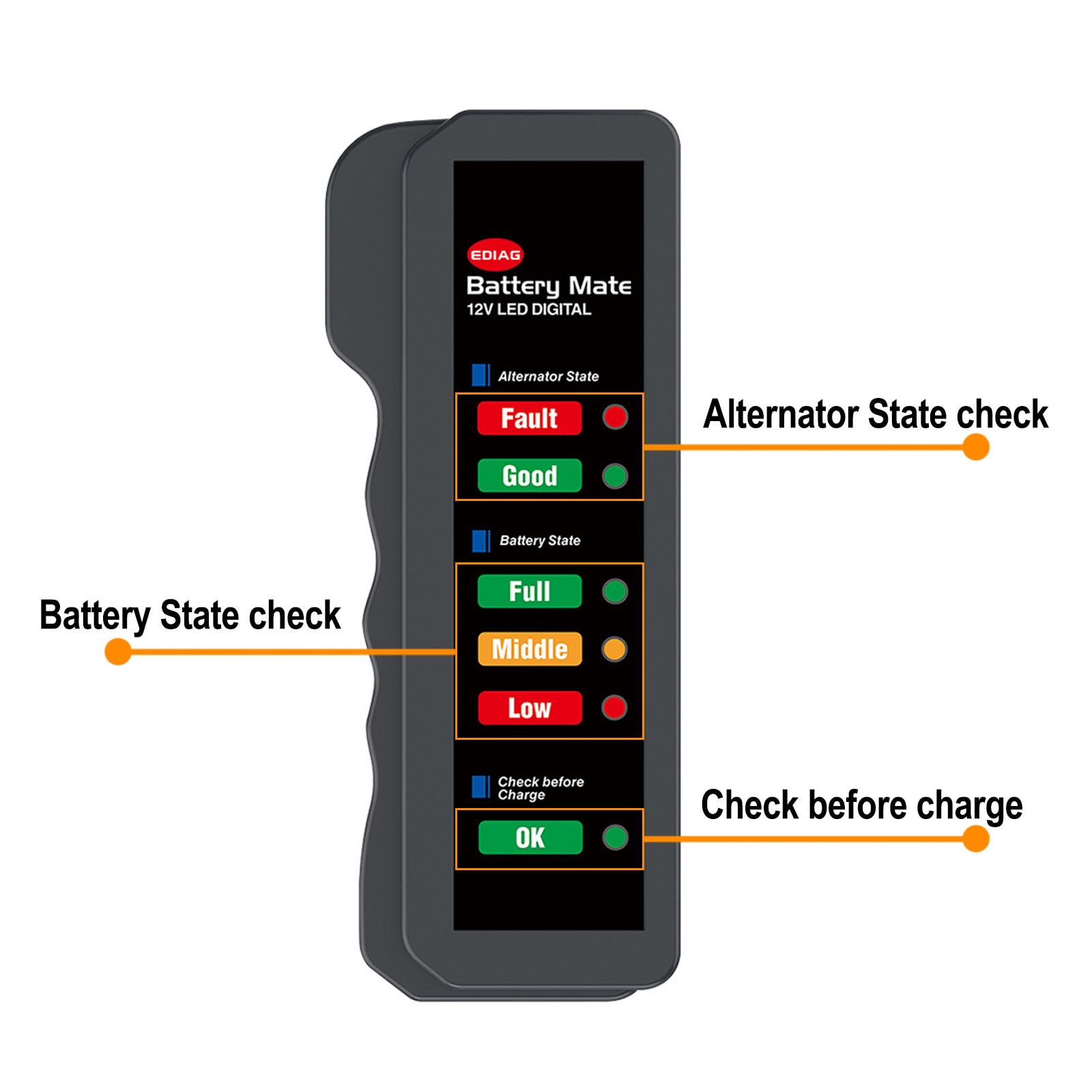 Mini 12V Car Battery Tester Digital Alternator Tester 6 LED Lights Display Car Diagnostic Tool Auto Battery Tester Analyzer