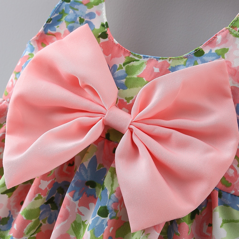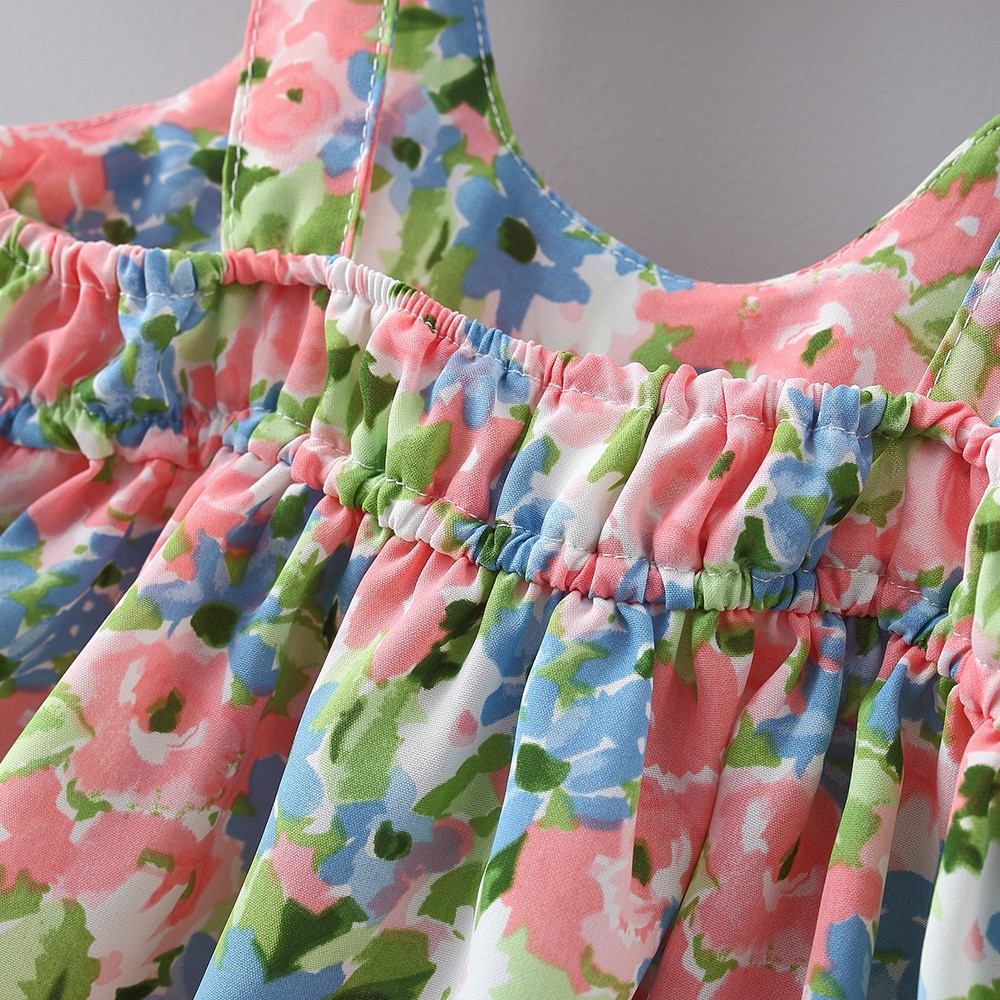 2Pcs/Set Flowers Baby Girl Dresses Summer Fashion Toddler Children Clothes Beach Smooth Dress Kid's Costume + Hat 0 To 3 Y