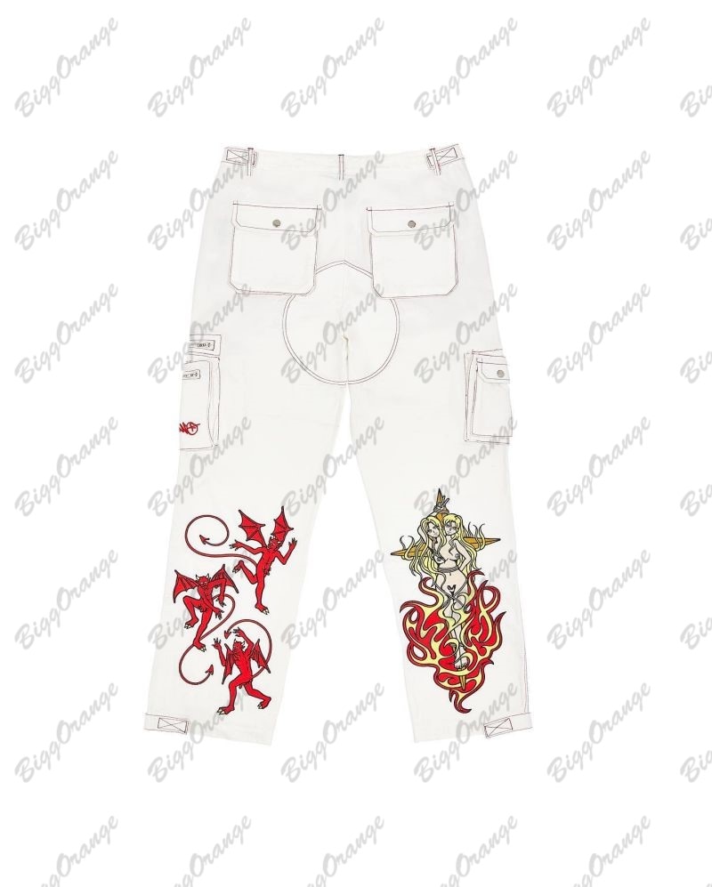Creative demon embroidery wash jeans men's queen size pants straight y2k slacks men clothing trousers cargo pants
