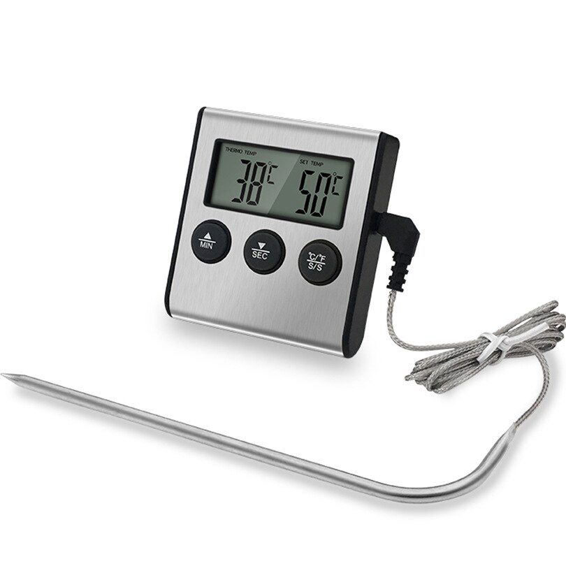 Mini Kitchen Digital Cooking Thermometer Meat Food Temperature for Oven BBQ Grill Timer Function with Stainless Steel Probe