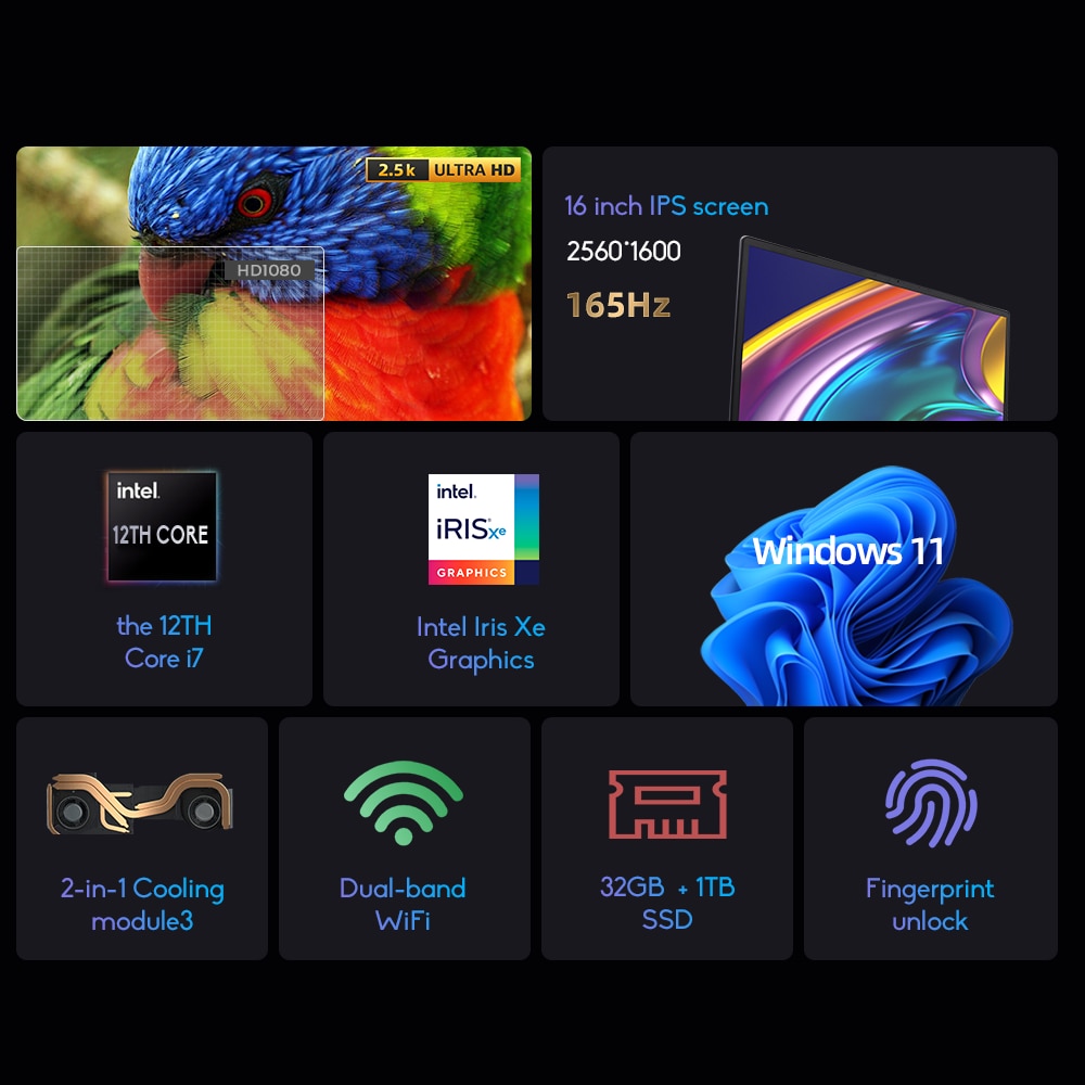 The N16 PRO is equipped with a 16" Ultra HD 2.5K resolution screen that can give you a larger and more detailed color visual experience with a 165hz refresh rate, allowing you to browse the web and game competitively with visual images as smooth as silk.