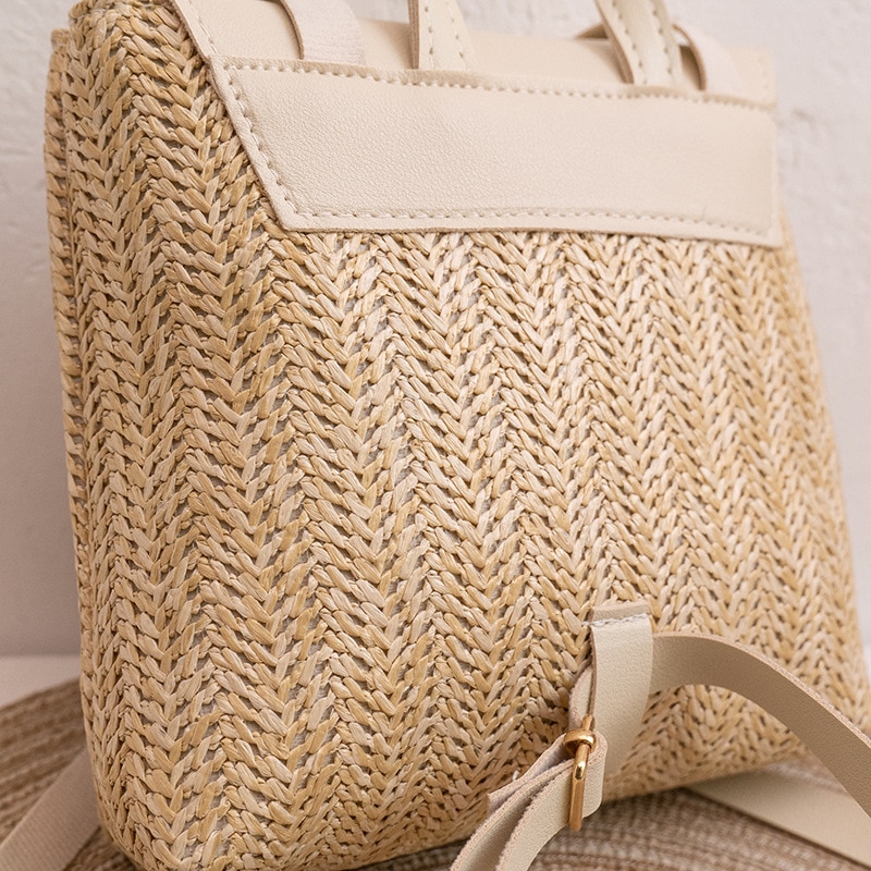 Vintage Straw Backpack Women's Fashion Shoulder Bag Versatile Straw Woven PU Leather Elegant Luxury Designer Backpack mochilas