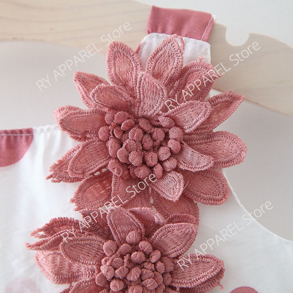 Dot Flower Decorative Infant Baby Dress Cotton Sleeveless Girl Baby Dresses Summer Clothing Newborn Toddler Dresses+Sunhat Set