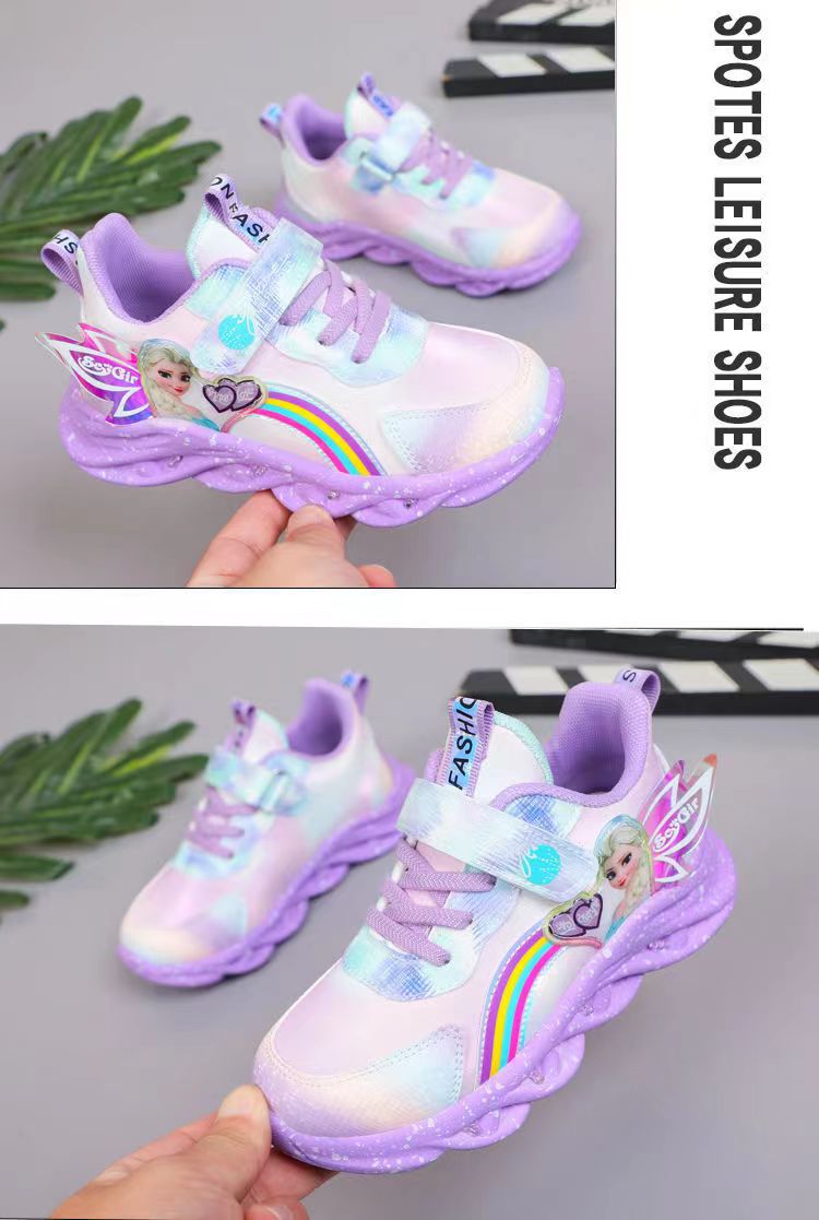 2023 Girls New Lovely Cartoon Sneakers Children Baby Spring Mesh LED Luminous Sports Shoes Infantil Winter Warm Light Up Shoe