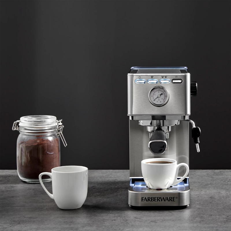 Farberware Espresso Maker with Steam Wand for Lattes, Cappuccinos and Mochas - silver