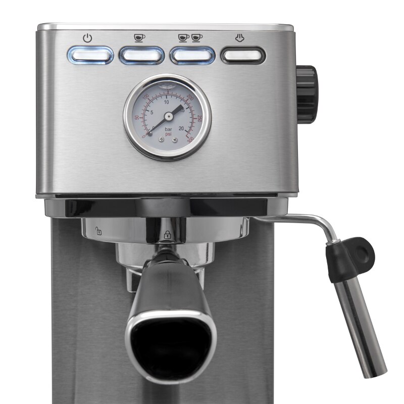 • 15-BAR PROFESSIONAL PUMP: The 15-bar pump delivers optimal pressure to extract a single or double espresso. Visible pressure gauge allows you view the current pressure level.