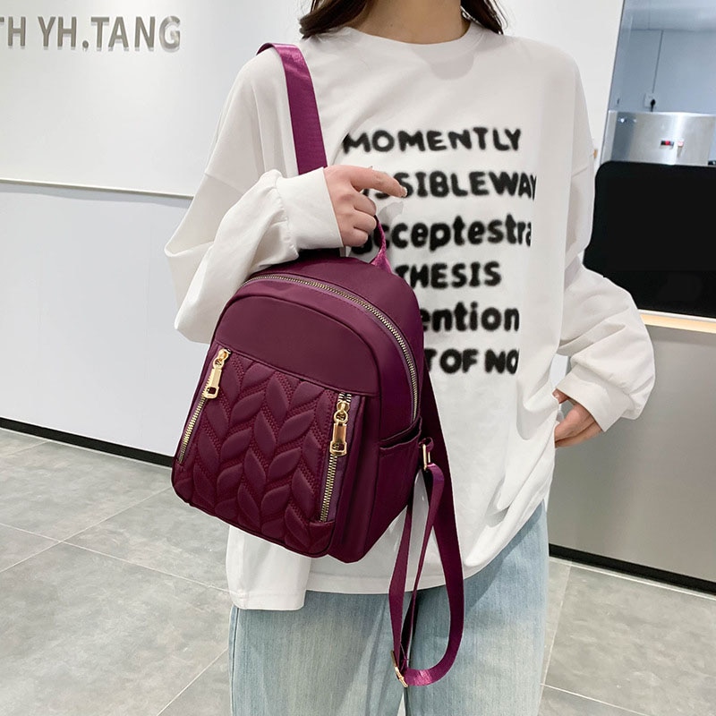 New Fashion Women Backpack Urban Simple Casual Backpack Trend Travel Solid Color Nylon Bag Waterproof Lightweight Ladies Bag