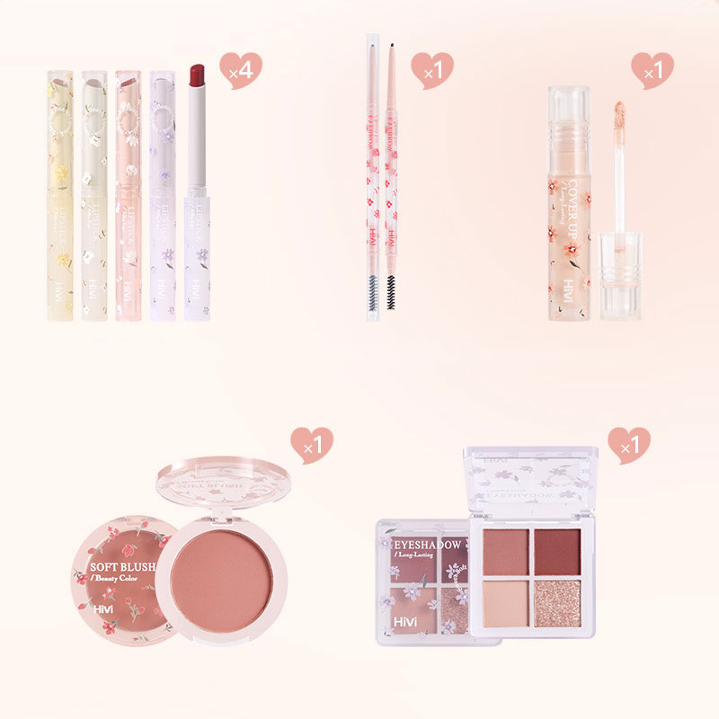 Sdattor FLORTTE Jelly Lipstick Eyeshadow Set Floria First Kiss Love Series Lip Gloss Mirror Water Light Lip Glaze Beauty Cosmeti