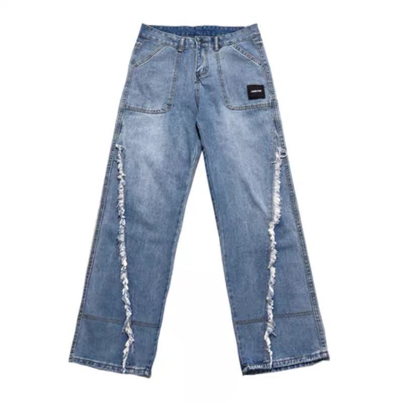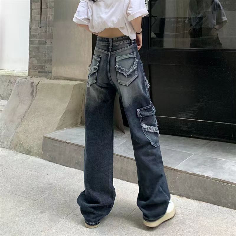 Design Feeling Raw Edge Jeans Women's Spring and Autumn 2023 New High Waist Straight Leg Jeans Loose Fit Wide Leg Pants Fashion