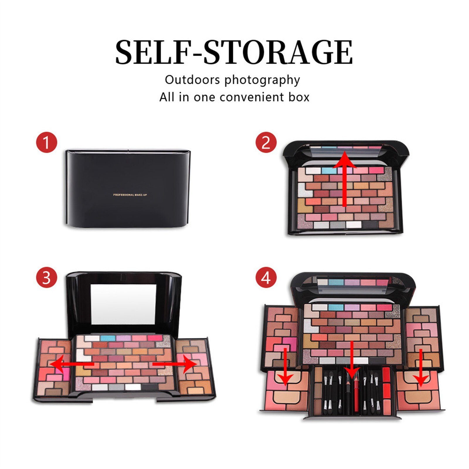 【 makeup kit】 Super soft shadows easily blendable. long-lasting, natural. For both personal and use.The make up box design adopts the three- pull type,he appearance is exquisite,wonderful gifts for teen girls.Glossy colors and ingredients together to care skin and can last for all day long. Highly pigmented water-proof,sweatproof and long lasting colors, keep your perfect makeup for a long time.